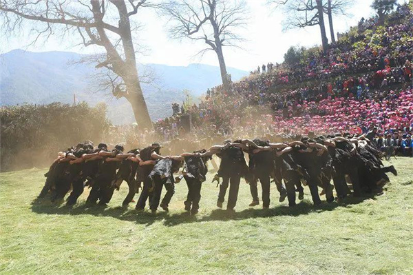 圍著熊熊燃燒的篝火跳起歡快的左腳舞