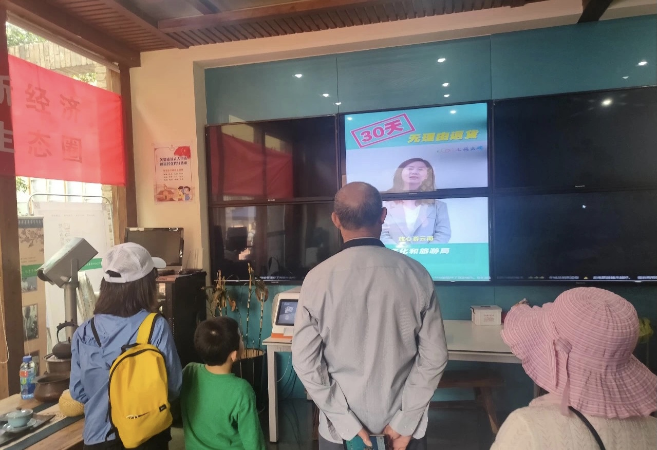 五一小長假期間,昆明市文旅服務中心通過游客驛站的電子顯示屏持續播放相關宣傳視頻、海報及標語,以昆明老街為圓心主動向市民發放宣傳資料,在醒目位置張貼宣傳海報及標語,五一假期期間共發放資料1800余份,進一步提高游客對“30天無理由退貨”的知曉率。