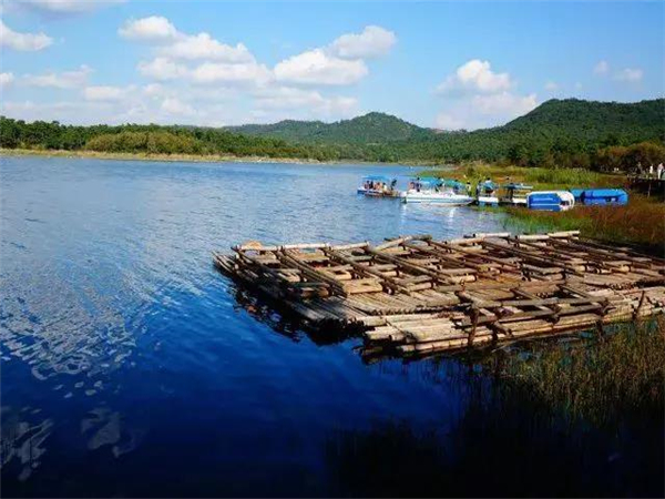 不同于石林風景區,石林長湖是真正山水相連的地方。這里湖水清澈平靜,魚兒眾多,空氣清新。岸邊青山綠樹倒映,讓人心曠神怡。